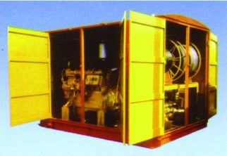 高压水泵、控制阀组、 电机、 水箱、 配电柜、 电缆, 高压胶管、低压水管、喷射枪具、脚控阀、 三组卷筒、机房、底盘、行走机构、备件箱等. |