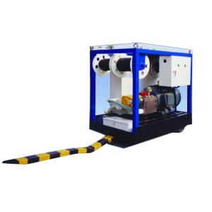 高压水泵、控制阀组、 电机、 水箱、 配电柜、 电缆, 高压胶管、低压水管、喷射枪具、脚控阀、 三组卷筒、机房、底盘、行走机构、备件箱等. |
