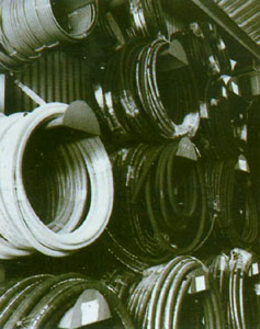 钢丝编织及钢丝缠绕高压胶管,直径(内经)为φ4、φ6、φ10、φ13、φ16等。 承受额定压力:20-100MPa。此胶管配上本公司喷头可清洗直径φ100-1000mm。一次推进长度为120m各类管道。